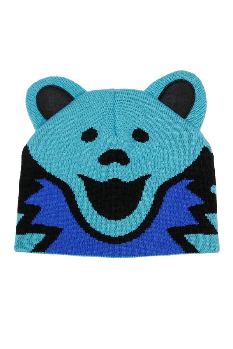 NEW! Check out these Officially licensed Grateful Dead® knit beanie style winter hats – this whole hat is a giant dancing bear face with ears attached at the top. So cute!
