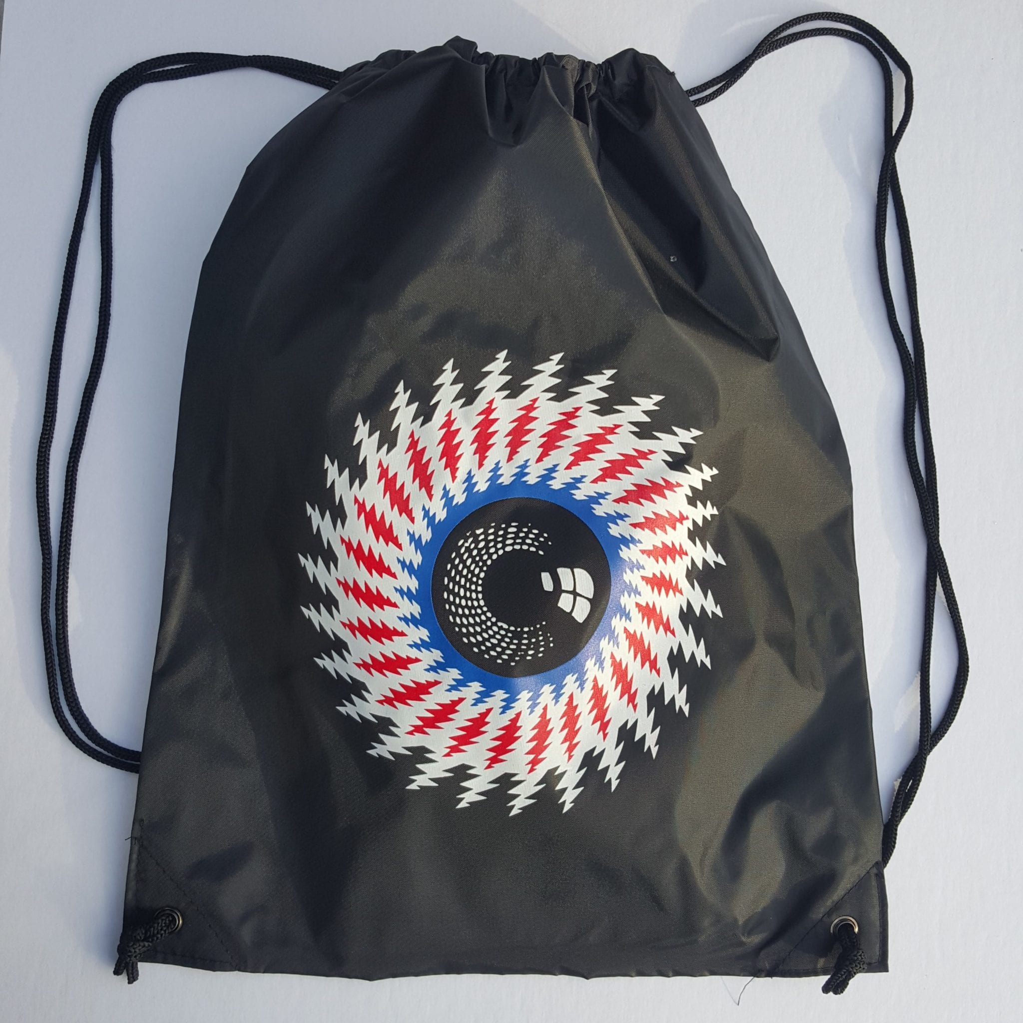Our new lightning bolt eye cinch drawstring backpacks are a great way to tote your stuff around at festivals and concerts, or use as a gym bag, reusable grocery sack, overnight travel bag, or any number of other uses.